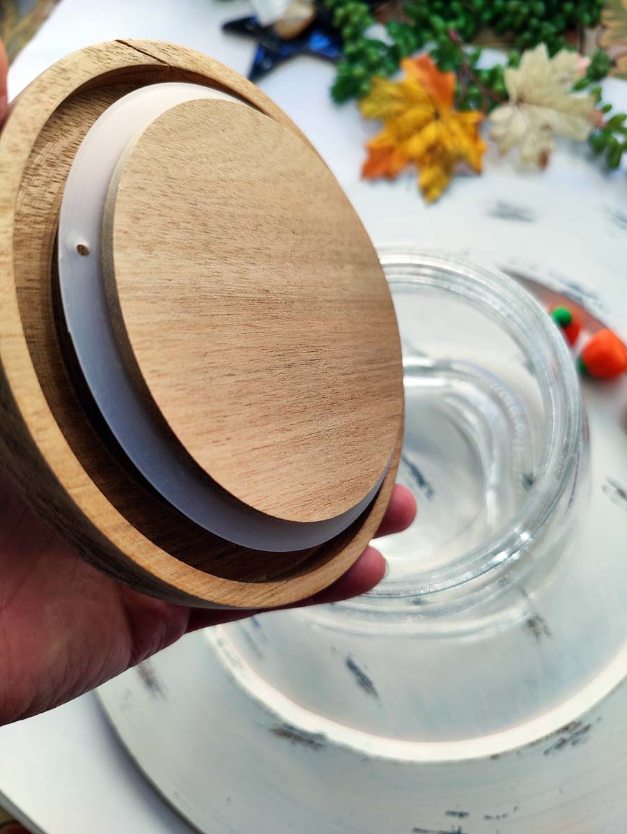 This Glass Jar with Wooden Lid was transformed with a little paint and Halloween Whimsy!